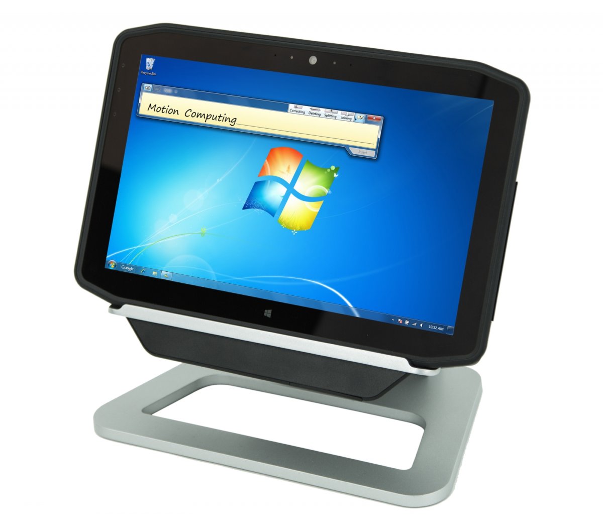 Tablet został pokryty czarną gumą tak by jak najlepiej chodnic jego wnętrze. Bogaty zestaw akcesoriów takich jak rysik, klawiatura, uchwyty biurowe sprawiają, że sprawdzi się zarówno w warunkach biurowych jak i poza nimi w terenie.