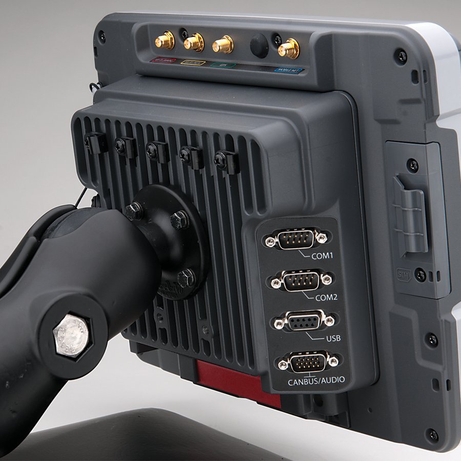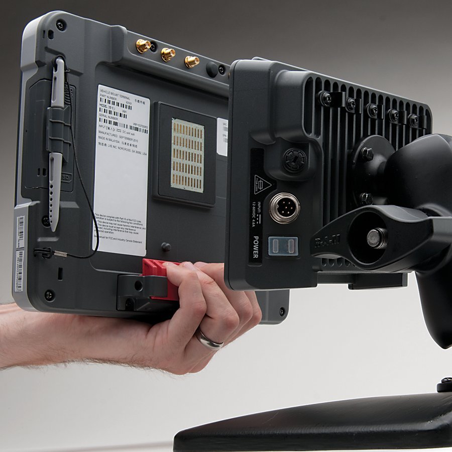 W konstrukcji urządzenia zaimplementowano również uchwyt montażowy pozwalający na szybkie i łatwe zdejmowania terminala z wózka. Ma to niezwykle duże znaczenie w przypadku np. awarii pojazdu w połączeniu z wbudowanym UPS, przenoszenie terminala odbywa się bez wyłączania i rozłączania sesji.