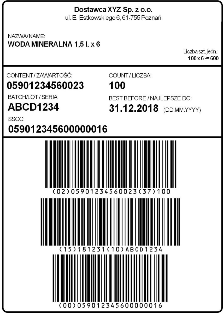 - GS1 DataMatrix (kod dwuwymiarowy, jedyn kod tego rodzaju wskazywany do wykorzystania w systemach EAN/GS1)